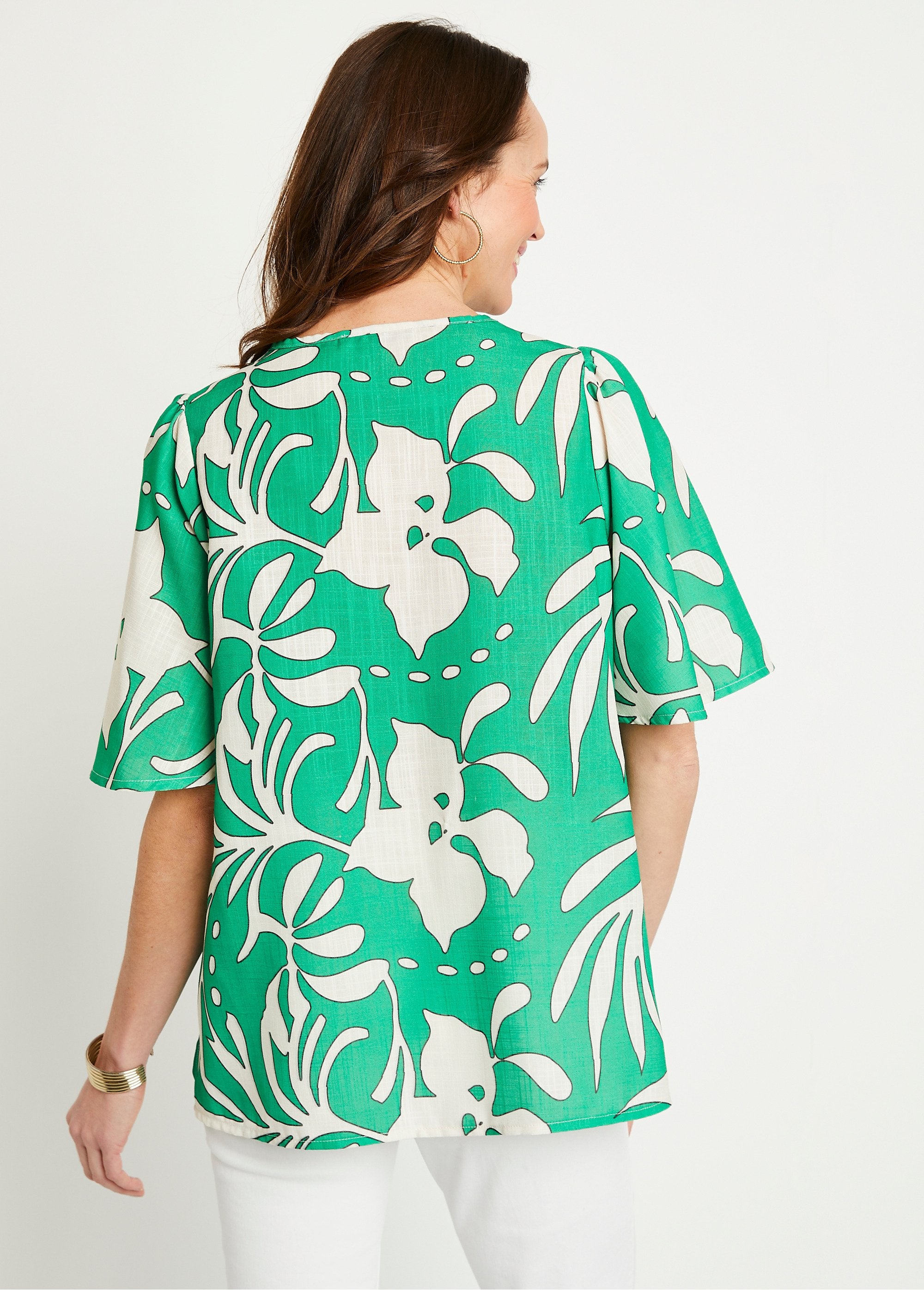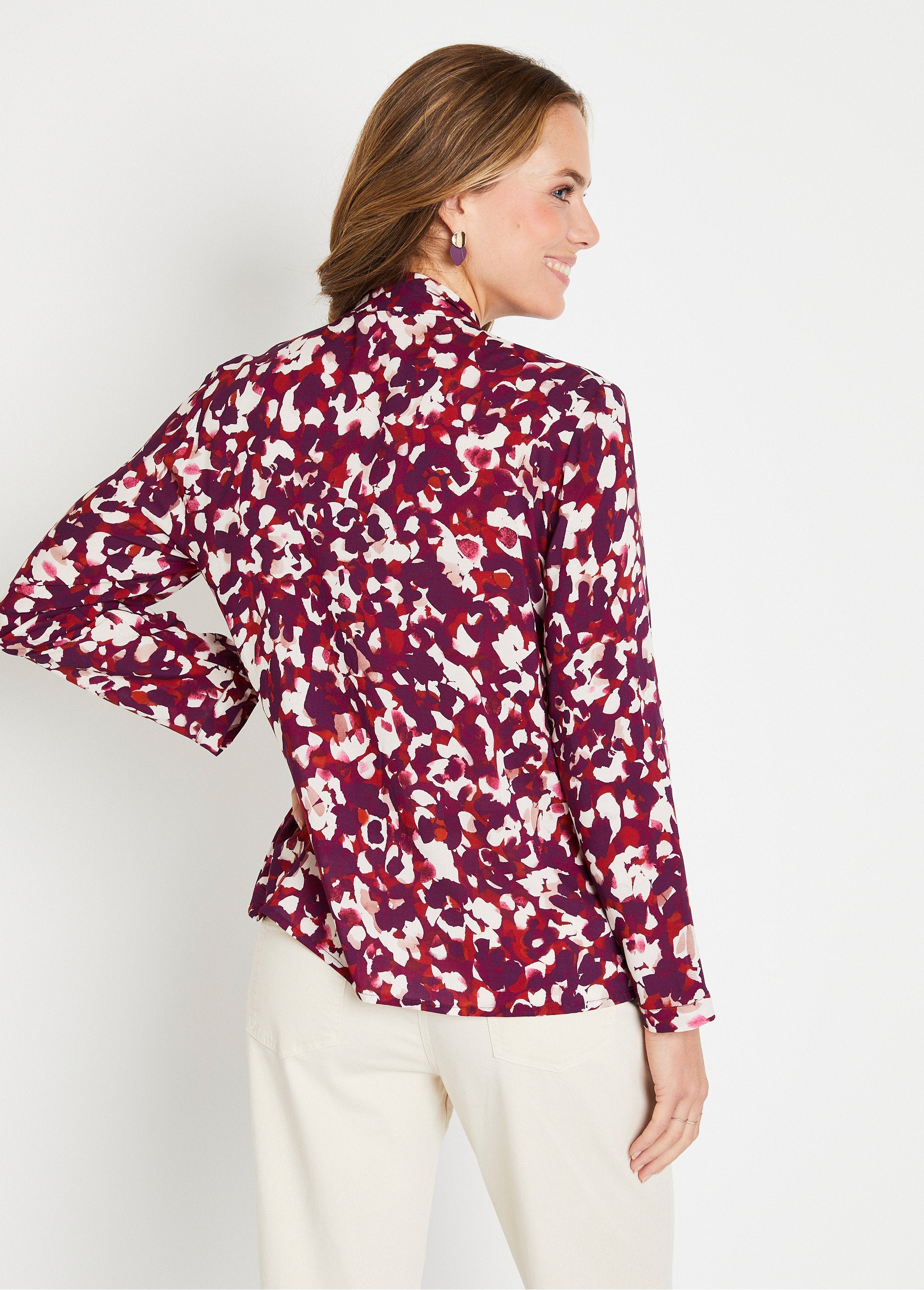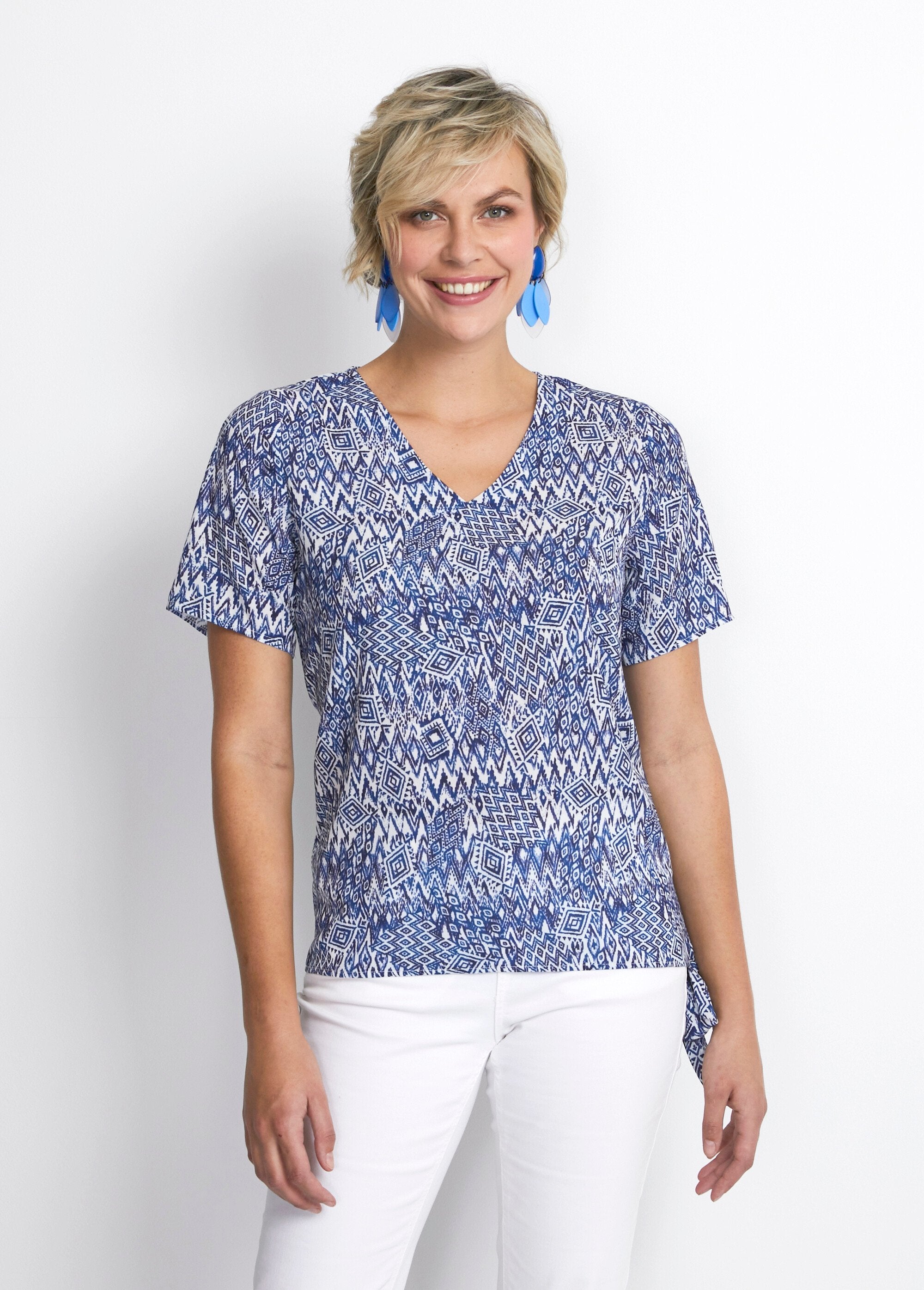 Túnica larga estampada con cuello de pico