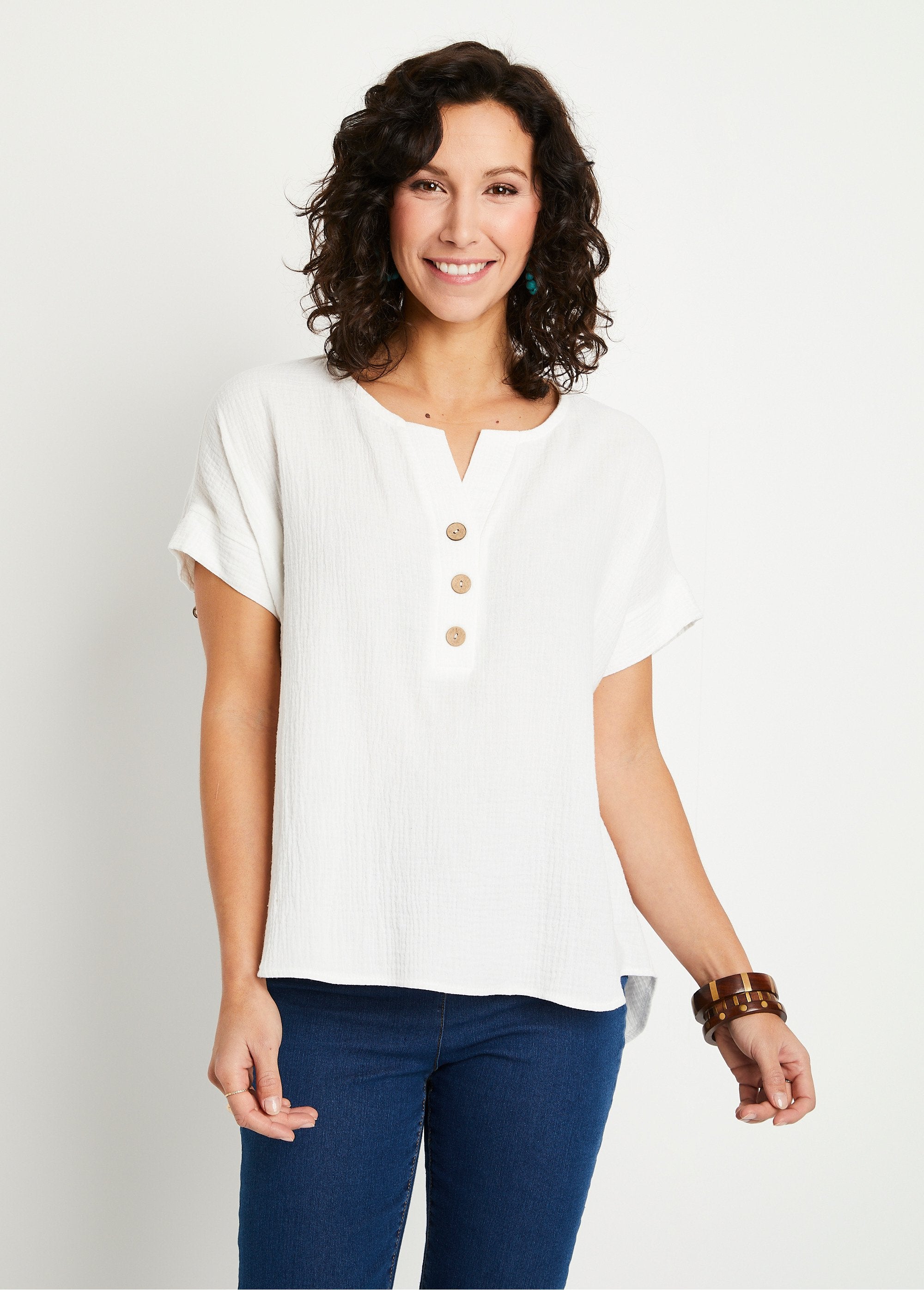 Blusa lisa de voile plumetis abotonada