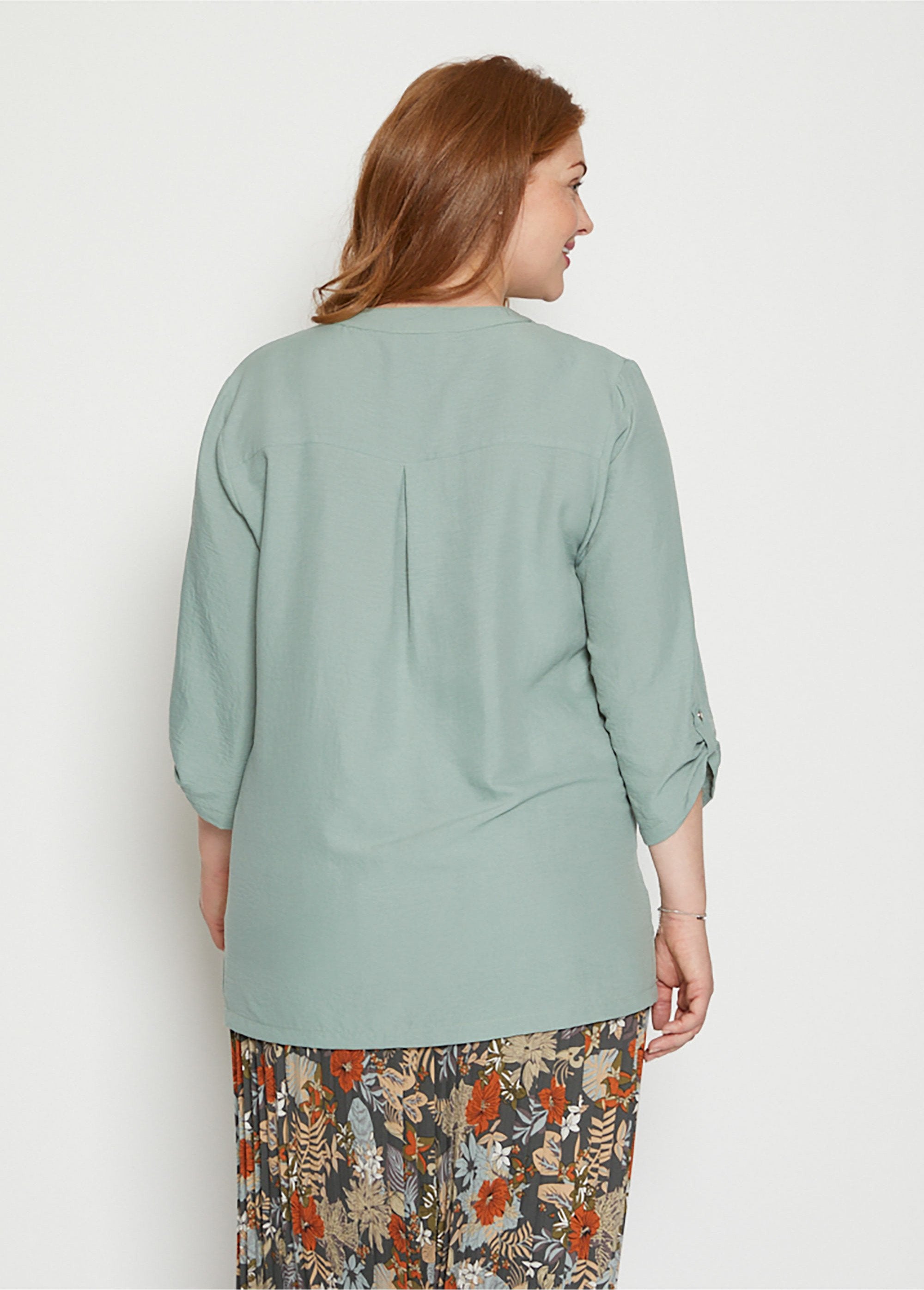 Túnica_holgada_abotonada_con_mangas_largas_3/4_Verde_FA1_slim Túnica_holgada_abotonada_con_mangas_largas_3/4_Verde_DO1_slim