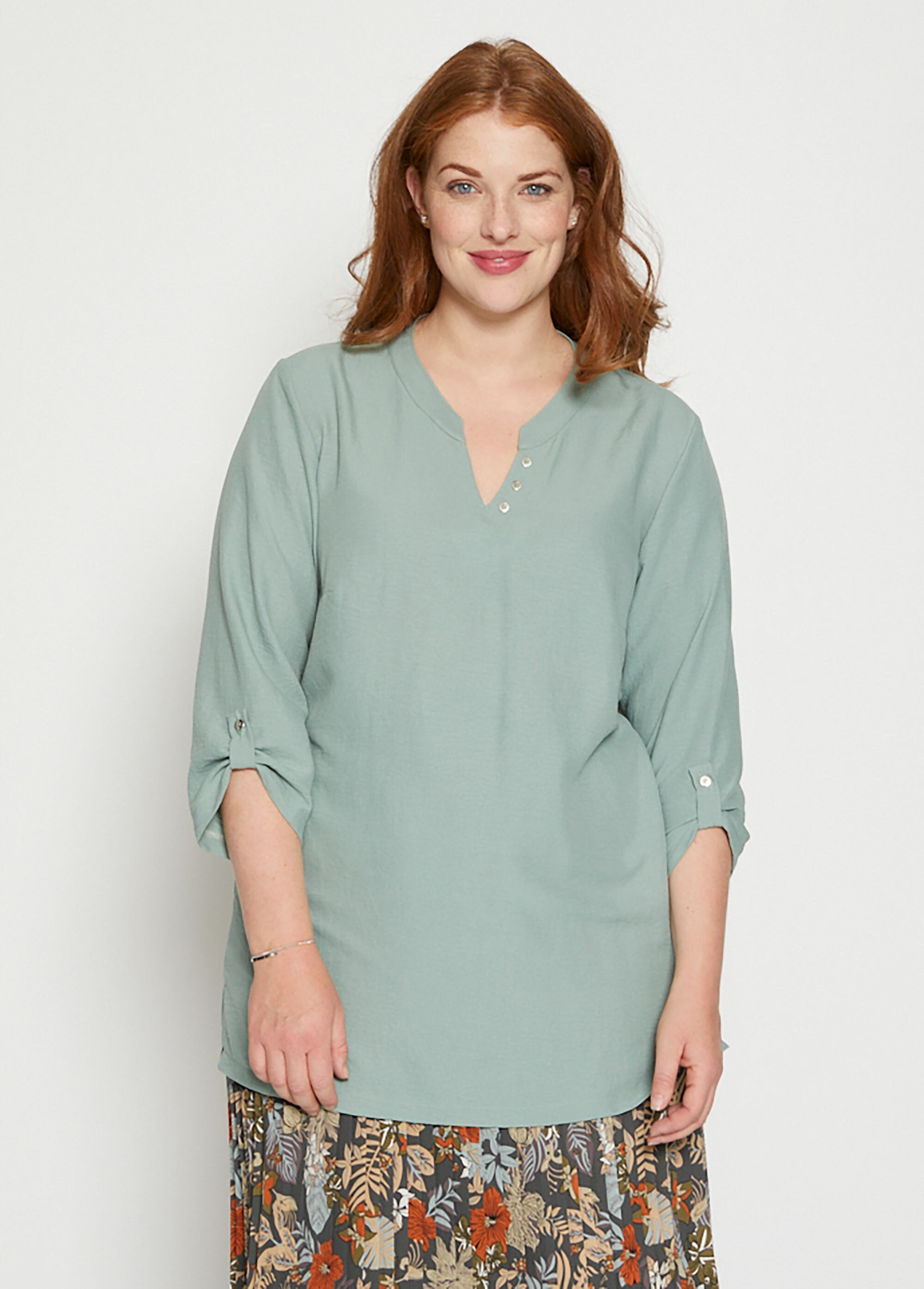 Túnica_lisa,_mangas_3/4_Verde_FA1_curvy Túnica_lisa,_mangas_3/4_Verde_DO1_curvy