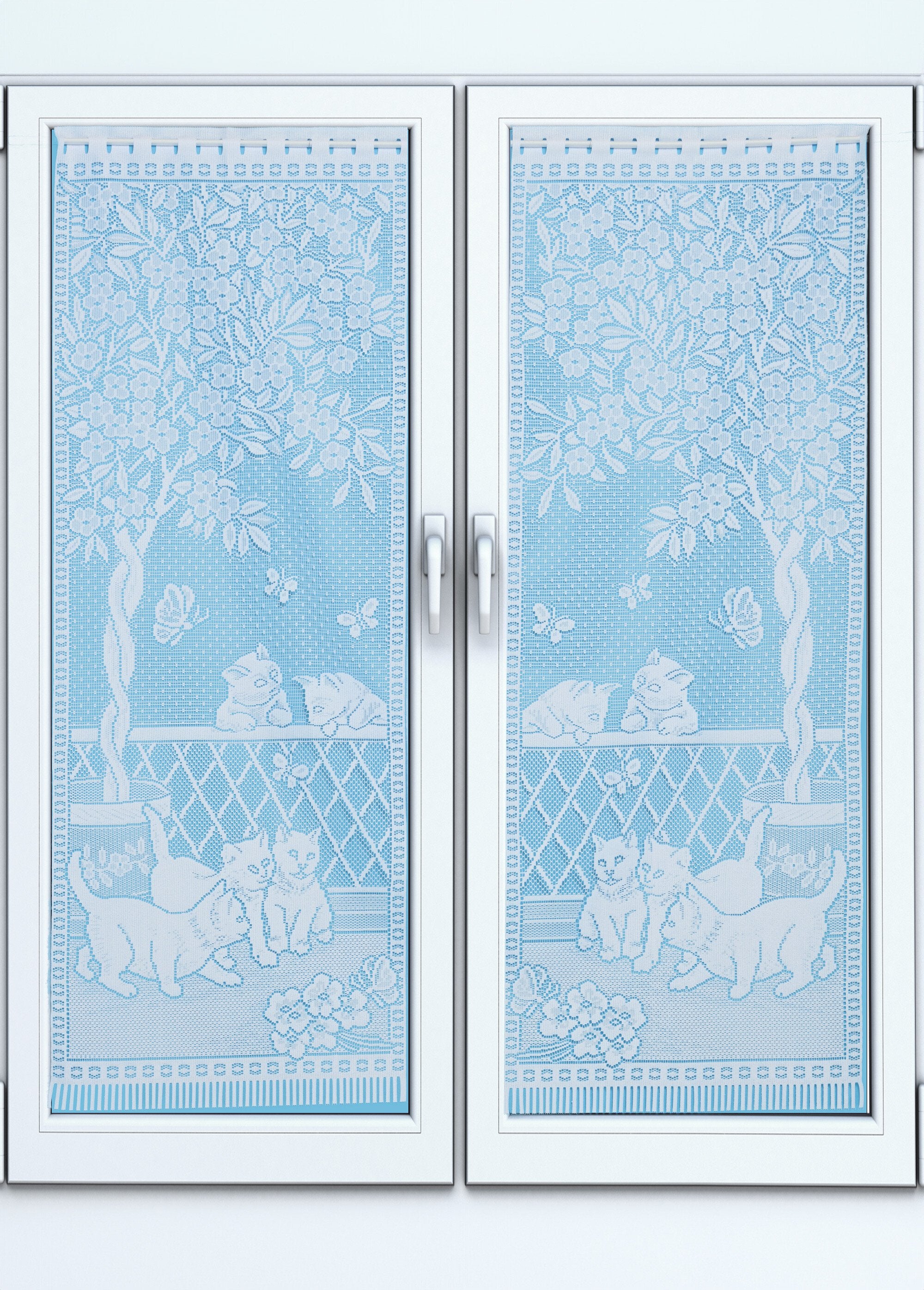 Acristalamiento recto con decoración de gato de encaje - par  Blanco, Blanca