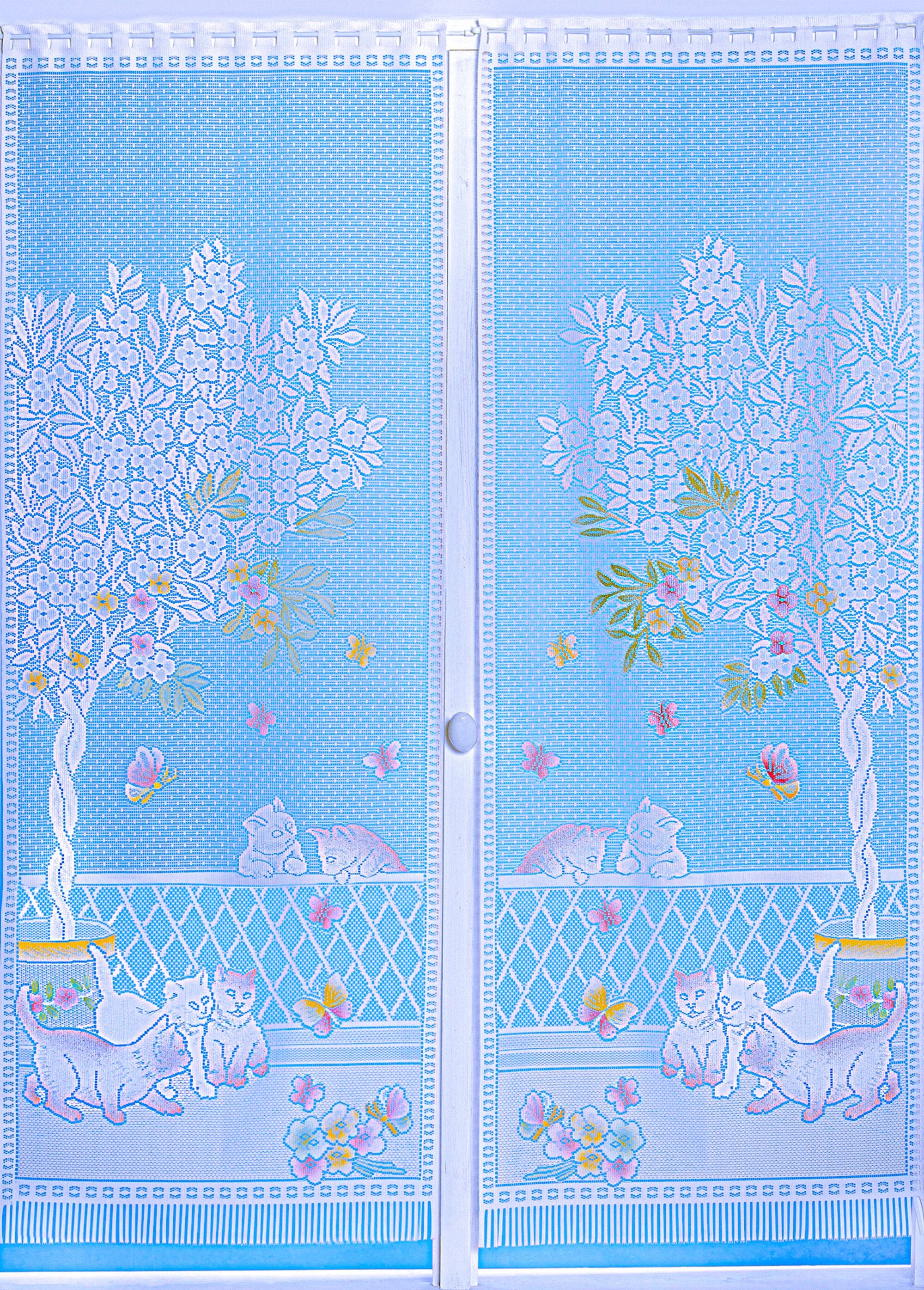 Acristalamiento recto con decoración de gato de encaje - par  Impreso